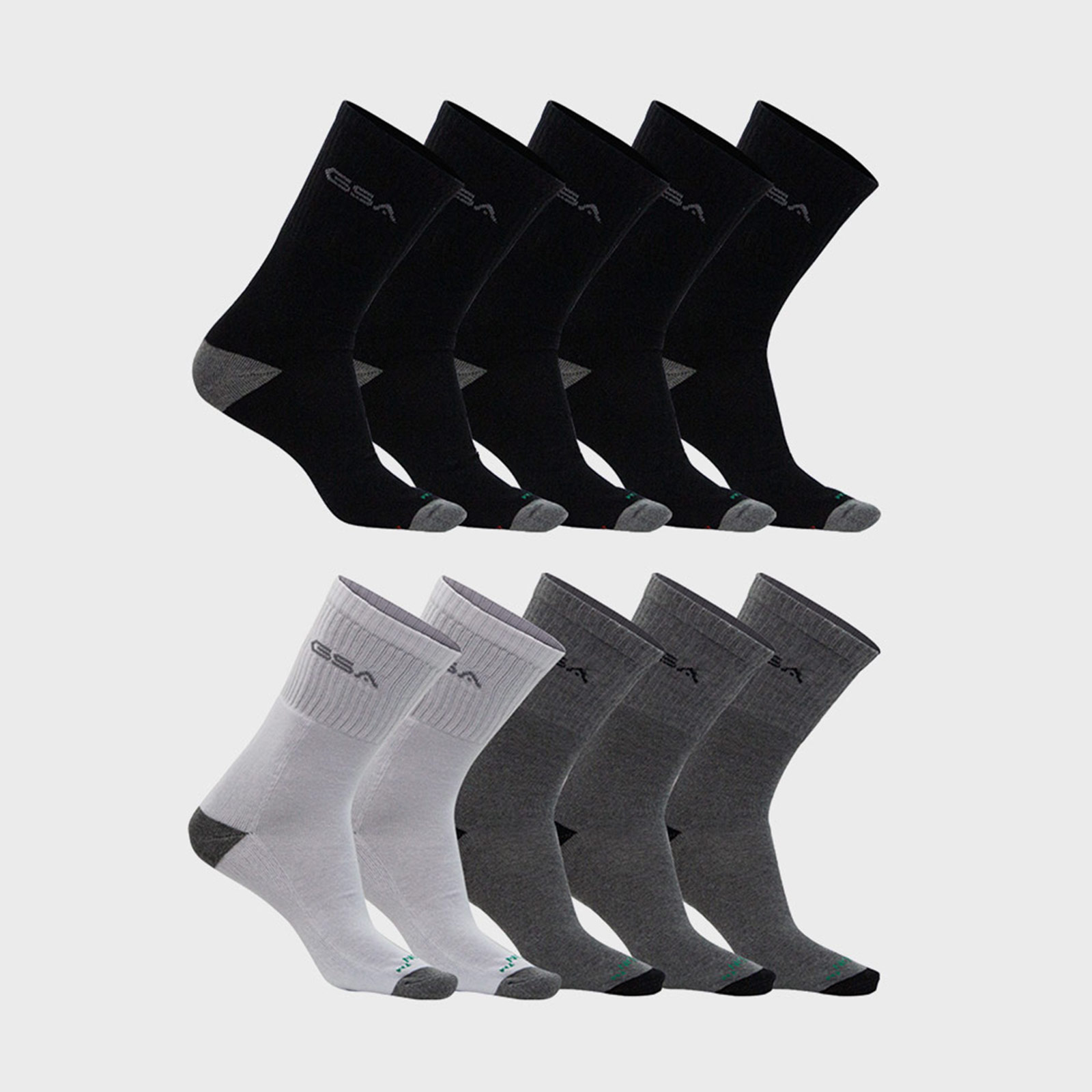 The GSA Crew Extra Cushioned Socks come in 10 pairs in a pack.